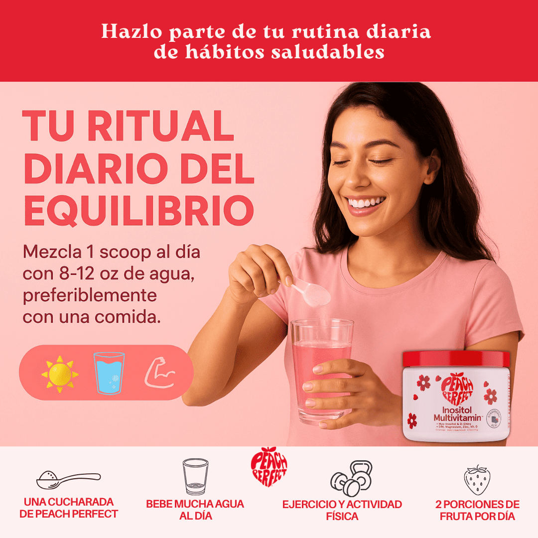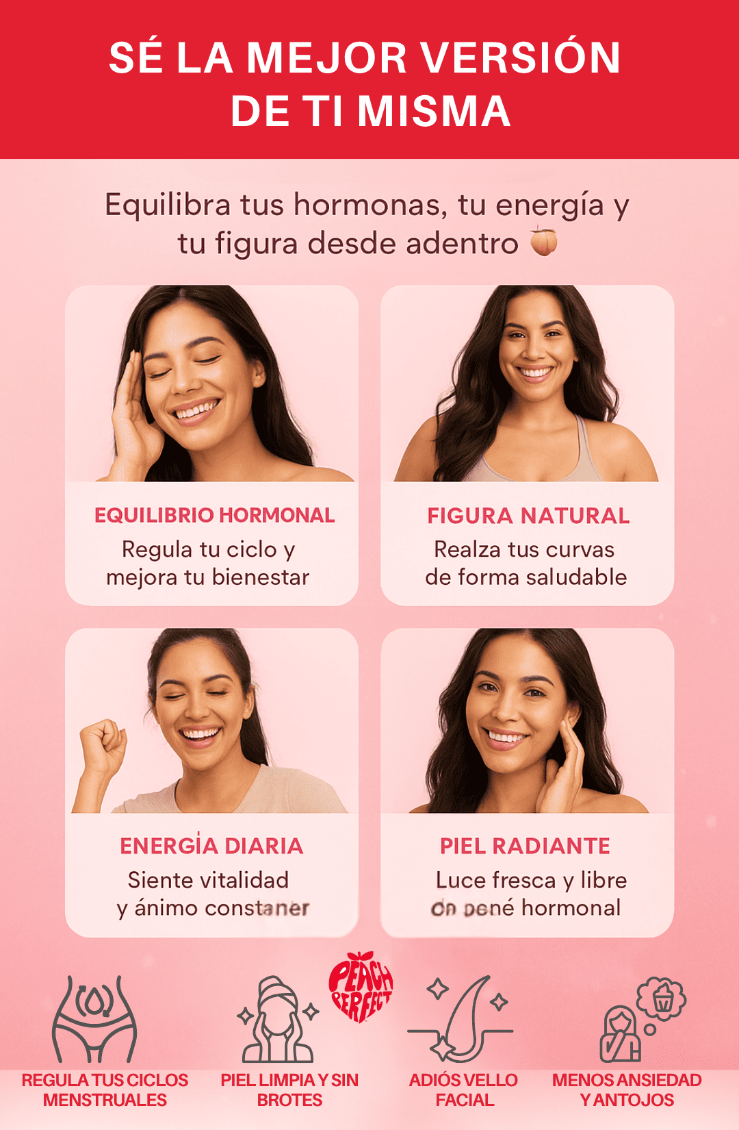 Peach Perfect ayuda a que tu cuerpo utilice mejor la insulina, equilibre tus hormonas y recupere su ritmo natural.